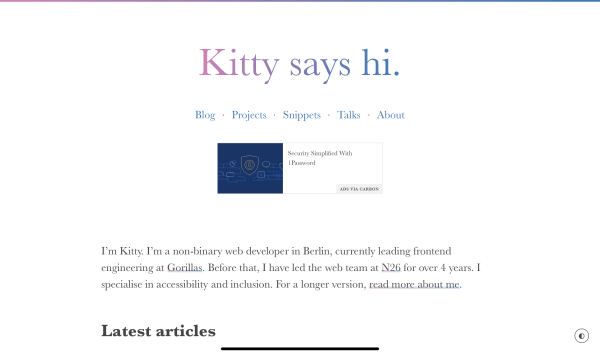 This site was built to share and revel in each others’ personal sites. Witness these in wonderment and awe. Immaculate. Stunning. How did they do that? Yes, you should definitely get around to redesigning yours soon.